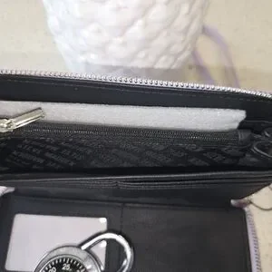 Introducing the exquisite STEVE MADDEN GENTLE LAVENDER WRISTLET/CLUTCH, a captivating accessory that embodies the essence of summertime elegance. This fashionable creation showcases a soothing lavender hue, accentuated by a sophisticated silver-plated zipper and subtle brand name embossment on the front. Upon opening, you will discover a spacious black interior, meticulously crafted to accommodate up to sixteen bank cards or identification documents, along with a designated cash pocket and checkbook holder. For enhanced security, a conveniently designed zip-secure coin pocket is incorporated. The luxurious exterior is complemented by impeccable stitching, both inside and out, ensuring durability and attention to detail. Elevate your summer style with the BZIPPY wristlet, an ideal companion for formal occasions such as weddings and cocktail parties. Embrace the opportunity to acquire this indispensable accessory and make a lasting impression.