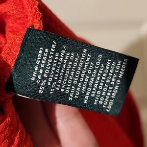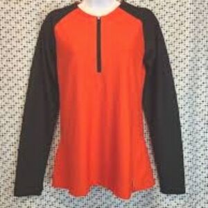Lauren Ralph Lauren long sleeve activewear top. Front 1/4 zipper. Orange/red color with cut in black sleeves. Like new condition. Approximate measurements are PTP 25 inches and length 28 inches.