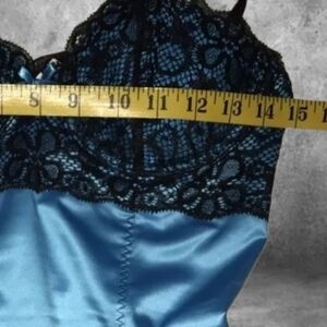 STRIKING Shiny deep AQUA BLUE STRETCH CORSET CHEMISE GARTER