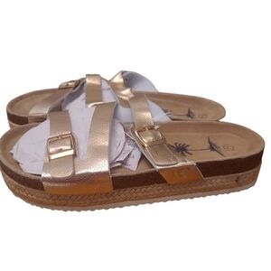 IC Lion Women's Open Toe Double Buckel Strap Slide Flat Cork Platform Sandle Size 11
