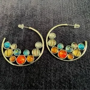 Silver tone and fun jewel colors in a pair of hoop earrings perfect for summer!