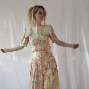 Vintage 80s Tropical Cottagecore Nancy Johnson dress size small