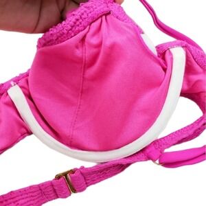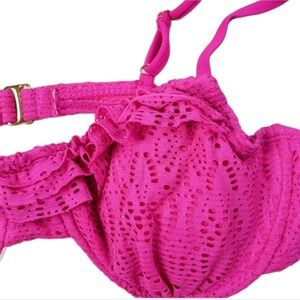 California Waves Crochet Lace Underwire Bikini Top Bright Pink Swim Top