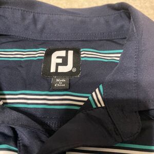 FootJoy Performance Men's Medium Golf Polo Short Sleeve Blue White Striped Shirt