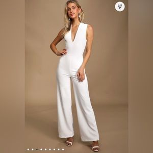Lulu’s Thinking Out Loud White Backless Jumpsuit