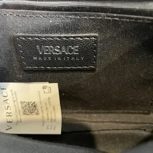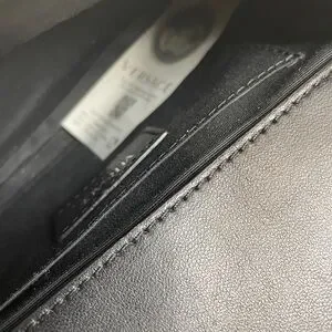 VERSACE Calfskin Nylon Quilted Medusa Chain Crossbody Black
