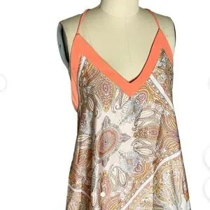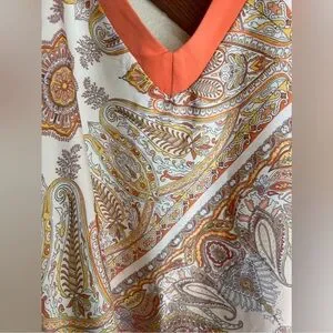 • silky feel and soft bohemian paisley print with coral orange trim