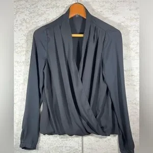 FOREVER 21 Black Flirty Front Crossed Blouse Size Large
