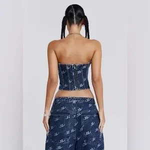 ❌SOLD❌ Jaded London Denim Monogram Strapless Buckle Logo Hardware Corset Top