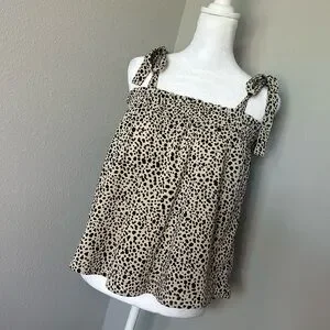 The Pink Lily flowy top in size S features delicate tied straps and a flattering black and tan color scheme.
