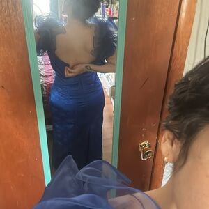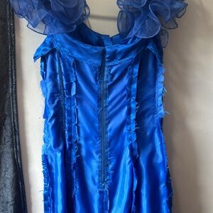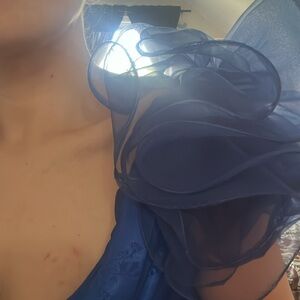 elegant royal blue dress with gorgeous fluffy sleeves strap