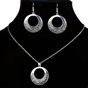 Necklace & Earrings 3pc Filigree Swirls Silver Round Dangle Boho Trendy Stylish