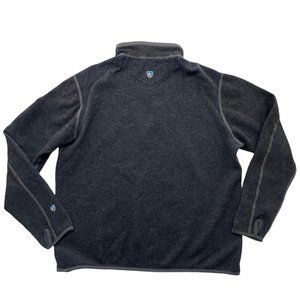 Kuhl Pullover Mens Large Brown Blue Heather Chianti Fleece Thumbholes Wool Blend