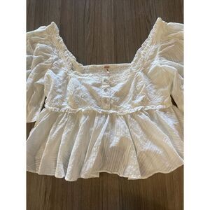 Free People Leave It To Me Babydoll Top Blouse Puff Sleeves in Ivory Size Small