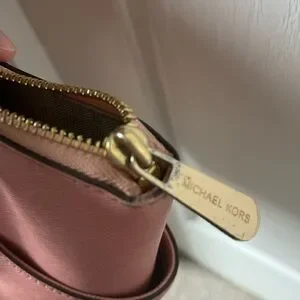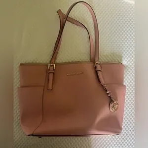 This is a pink Michael Kors purse. Lots of room inside. Used, but still in good condition! A little wear on the zipper (showed in pictures).