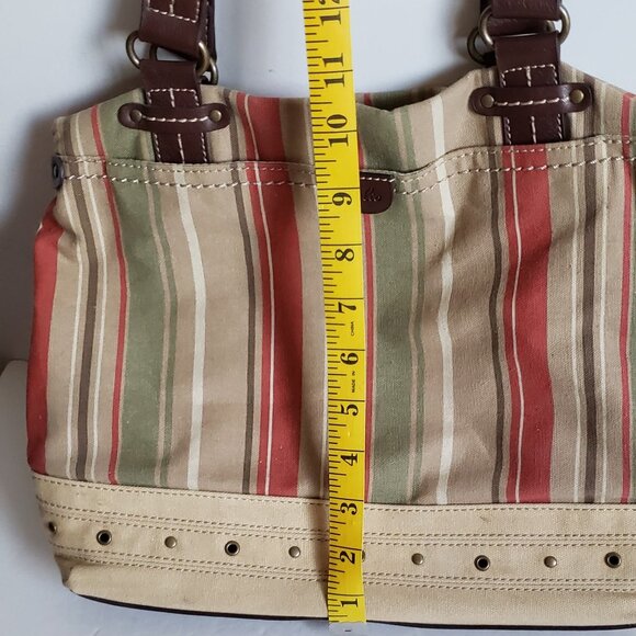 Large RELIC by FOSSIL Canvas Handbag Utility Boho Stripe Olive Red Vintage