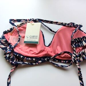 NWT Carve Designs 34C Underwire Dahlia Bikini Top Blue/pink/white design.