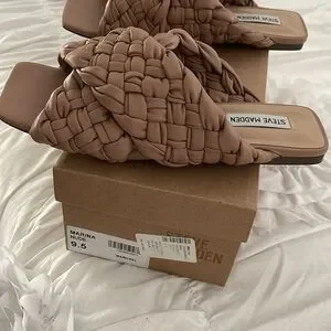 Steve Madden criss cross braided flat slides. Square toe. Great condition. Size 9-1/2.