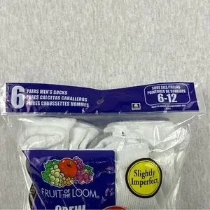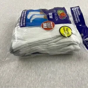 FRUIT OF THE LOOM COTTON BLEND MEN’S CREW SOCKS SLIGHTLY IMPERFECT 6 PAIRS WHITE