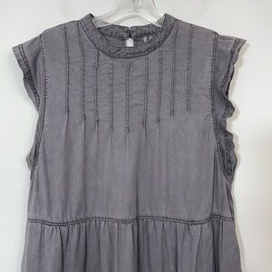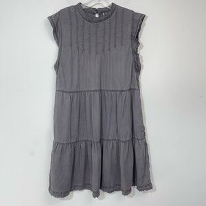 Anthropologie Dark Gray Jenee Tiered Tunic Dress L Large Summer Swing Pockets