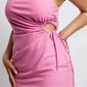 MESHKI ONE SHOULDER LINEN CUT OUT PINK DRESS