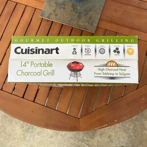 NEW in BOX, Cuisinart 14" Portable Charcoal grill offers the perfect solution for all your on-the-go grilling needs. This compact little grill is lightweight & easy to transport but still offers over 150 square" Of grilling space - The 196-square-inch chrome plated cooking rack gives a spacious cooking surface is able accommodate lots of food at one time while still distributing heat evenly and efficiently.