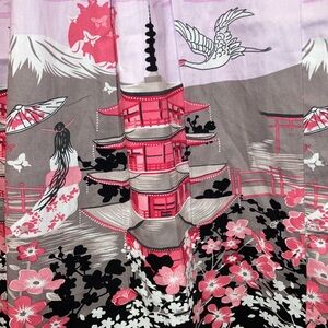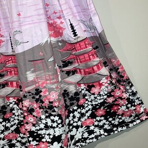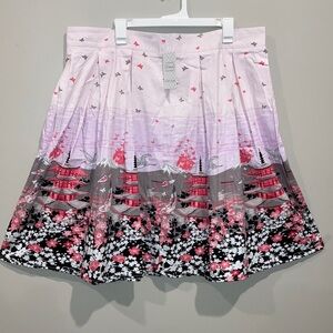 SUCREFAS Light Pink Floral Full Skirt Size XXXL Oriental Print Darted Knee Length