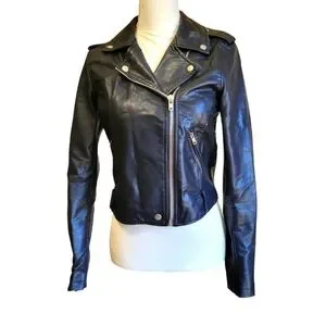 BLACK Faux Leather Moto Jacket Women's Size Small