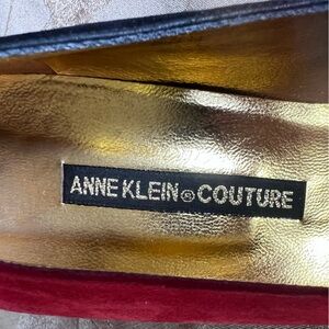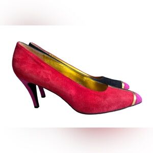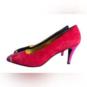 Anne Klein Couture Heels / Vintage 90S / Red Pink Black Colorblock Suede Heels