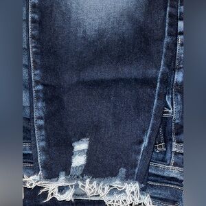 KanCan Signature Jeans, high rise/ankle skinny jeans. Hem is destroyed, dark blue jeans. Size 34. Worn but in great condition. Smoke free home.