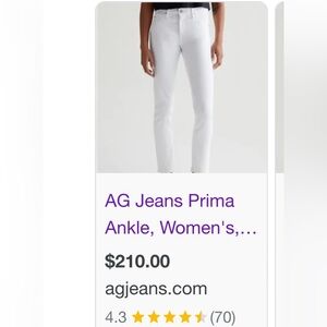 AG Prima Ankle Cigarette Ankle jeans , size 24, brand new! Retails at department store at $210. Brand new, white