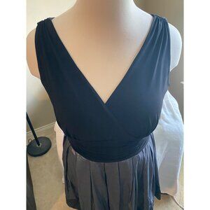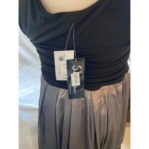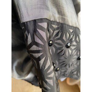Simple but sophisticated black and charcoal colored evening dress with beaded detailing.