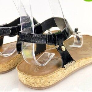 Tommy Bahama Women's Tanna Sandal Size 6 Thong Flat Black Patent Slingback Shoe