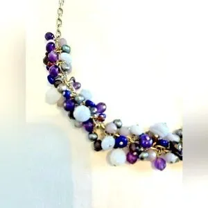 Purple Necklace Bead Choker on Silver Chain.