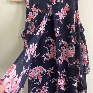 Tommy Hilfiger Black And Pink Crescent Floral Chiffon Sleeveless Dress-size 6