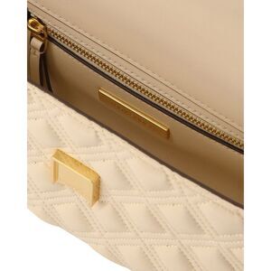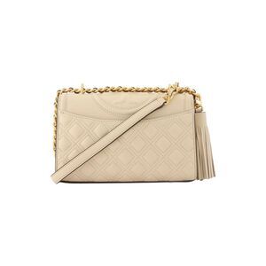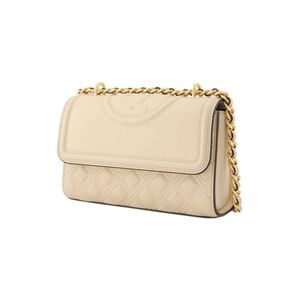In beige quilted leather with a chain top handle, the Fleming from Tory Burch works if your style is edgy or preppy. Wear it crossbody with a biker jacket, a flowery dress or ankle boots, or on your shoulder with a double-breasted blazer. Shoulder Strap : 565 cm. Shoulder and hand bag - one shoulder strap. Material : smooth lambskin. Lining : polyurethane 100% Colour : Beige - 122 New Cream. Fits all phones up to the iPhone 13 Pro Max and the Samsung Galaxy Note 20. Closure: Flap with magnetic clasp. Interior : one outer back pocket, two inner slot pockets, one zipped pocket.