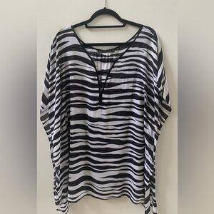 SZ SP Vix Paula Hermanny Black / White Zebra Stripe Cover-Up Kaftan