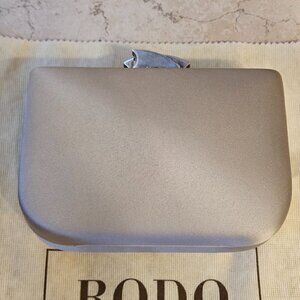 This is an AUTHENTIC Rodo Evening Bag. This evening bag is VERY RARE and the ONLY ONE on EBAY! This Haute Couture bag is sure to dress up any outfit!! The bag is composed of Swarovski crystals accents at the top closure. Also, the interior of the bag is signed, "Rodo." It has a metal chain strap. The strap can be folded down to go in the interior of the bag to carry as a clutch if desired. This comes from a non-smoking home. It has the Rodo tag attached. Purchased from Sak's Fifth Avenue. Comes from a non-smoking home. It comes with the Rodo dustbag. Pictures of actual item.