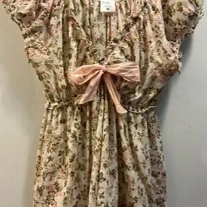 Motherhood Maternity Cotton Top. Size Med. Cream/Link Floral Short Sleeve