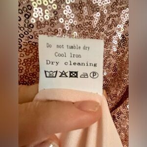 Fully lined with a keyhole button back. Super pretty rose gold sequins. Feminine and sparkly!