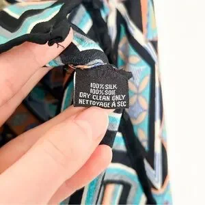 Tolani silk long sleeve blouse abstract print tunic navy blue Anthropologie