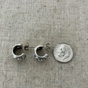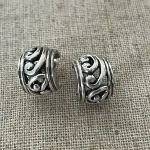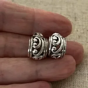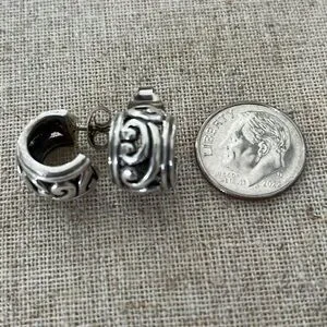 Sterling Solid 3/4 Scroll Posted Hoop Earrings. Stamped 925. Measures approximately 5/8” in diameter & 7/16” wide. Nice Weight is 6.16 grams. Posted back. Good condition. Will add new bullet backs in packaging. Smoke free & pet free home.