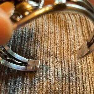 This is a Vintage Native American Native sterling silver and kingsman turquoise and pink mother of pearl reversible cuff signed by the artist. Circumstance is 6” with 1”gap 48 grams of silver