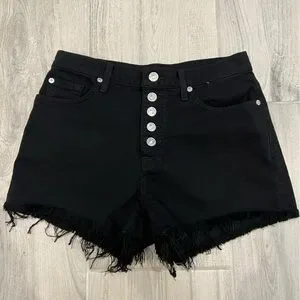 7 For All Mankind High Waisted Button Up Black Jean Shorts size 27
