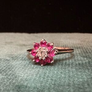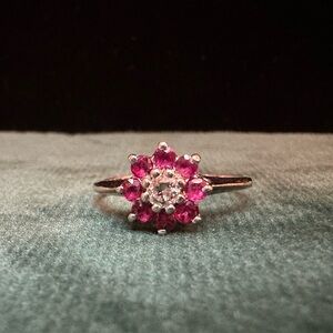 Ruby and Diamond ring 14k solid white gold genuine gems
