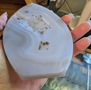 This is a wonderful druzy agate. Large piece of agate. All marks are natural to the agate.