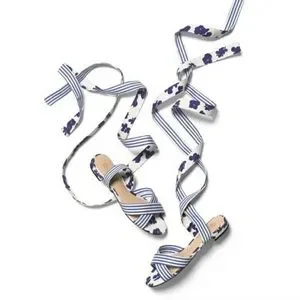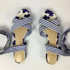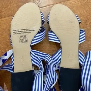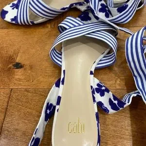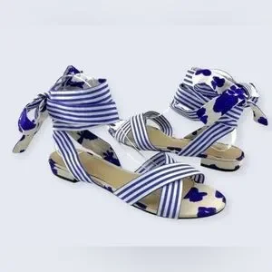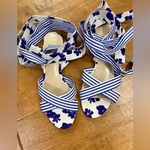 NWOT CABI blue and white watercolor floral and stripe tied up sandal size 9.5