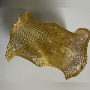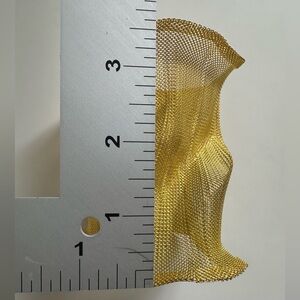 Large artsy gold tone free form sculptural crumpled metal mesh cuff bracelet