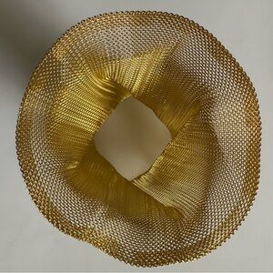 Metal mesh cuff with crumpled effect in bright yellow gold tone.