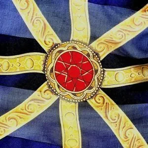 Vintage scarf 80s by Ellen Tracy in royal purple, red and gold